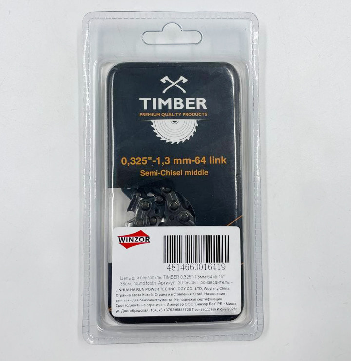 Цепь для бензопилы 0,325″-1,3мм-64 зв-15″ 38см TIMBER круглый зуб
