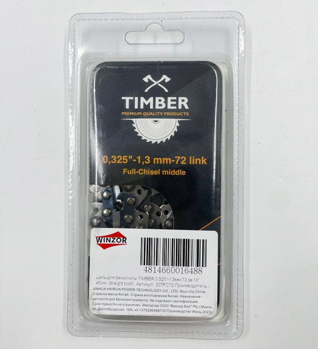 Цепь для бензопилы 0,325″-1,3мм-72 зв-18″ 45см TIMBER прямой зуб