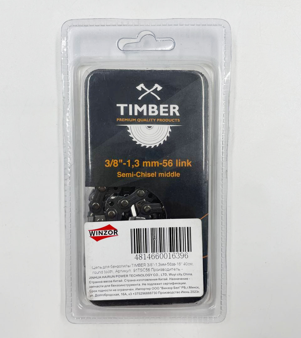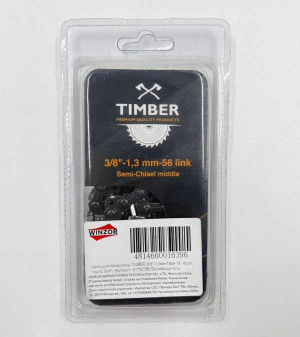 Цепь для бензопилы 3/8″-1,3мм-56зв-16″ 40см TIMBER круглый зуб