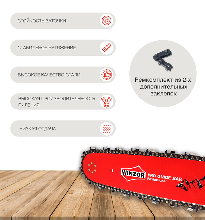 Цепь для бензопилы 3/8lp”-050-56L Winzor. Подходит для бензопил PARTNER 16 и др.
