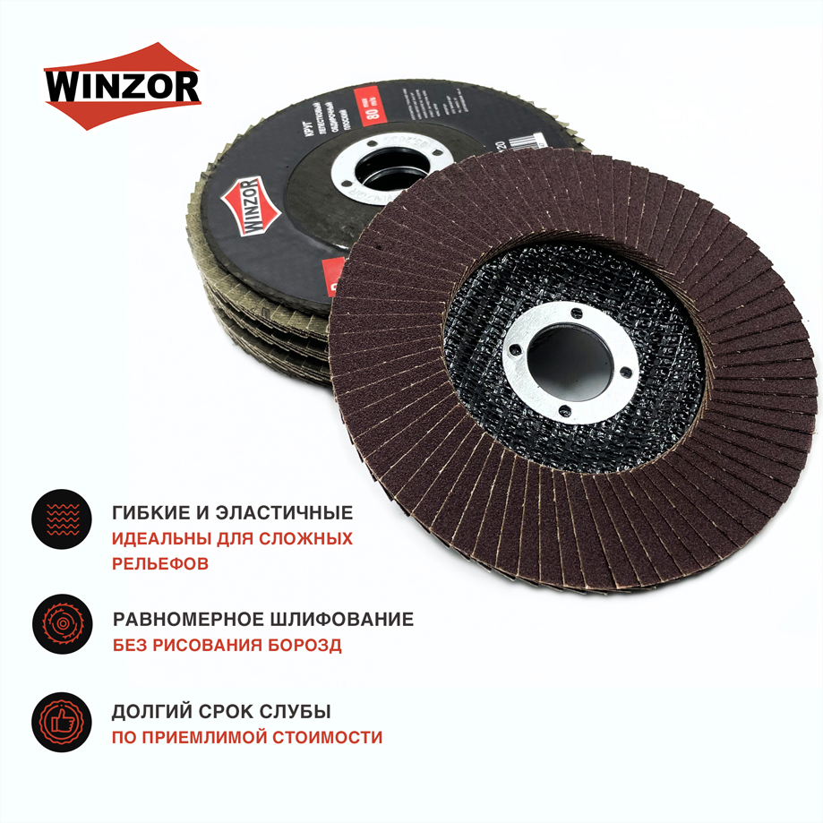 Обдирочные круги WINZOR предназначены для деликатной и производительной обработки поверхностей, а также для шлифования и финишной зачистки. Благодаря лепестковой структуре инструмент создает минимальный шум и вибрацию, что снижает утомляемость оператора и позволяет добиться идеально гладкой поверхности без глубоких рисок и дефектов.